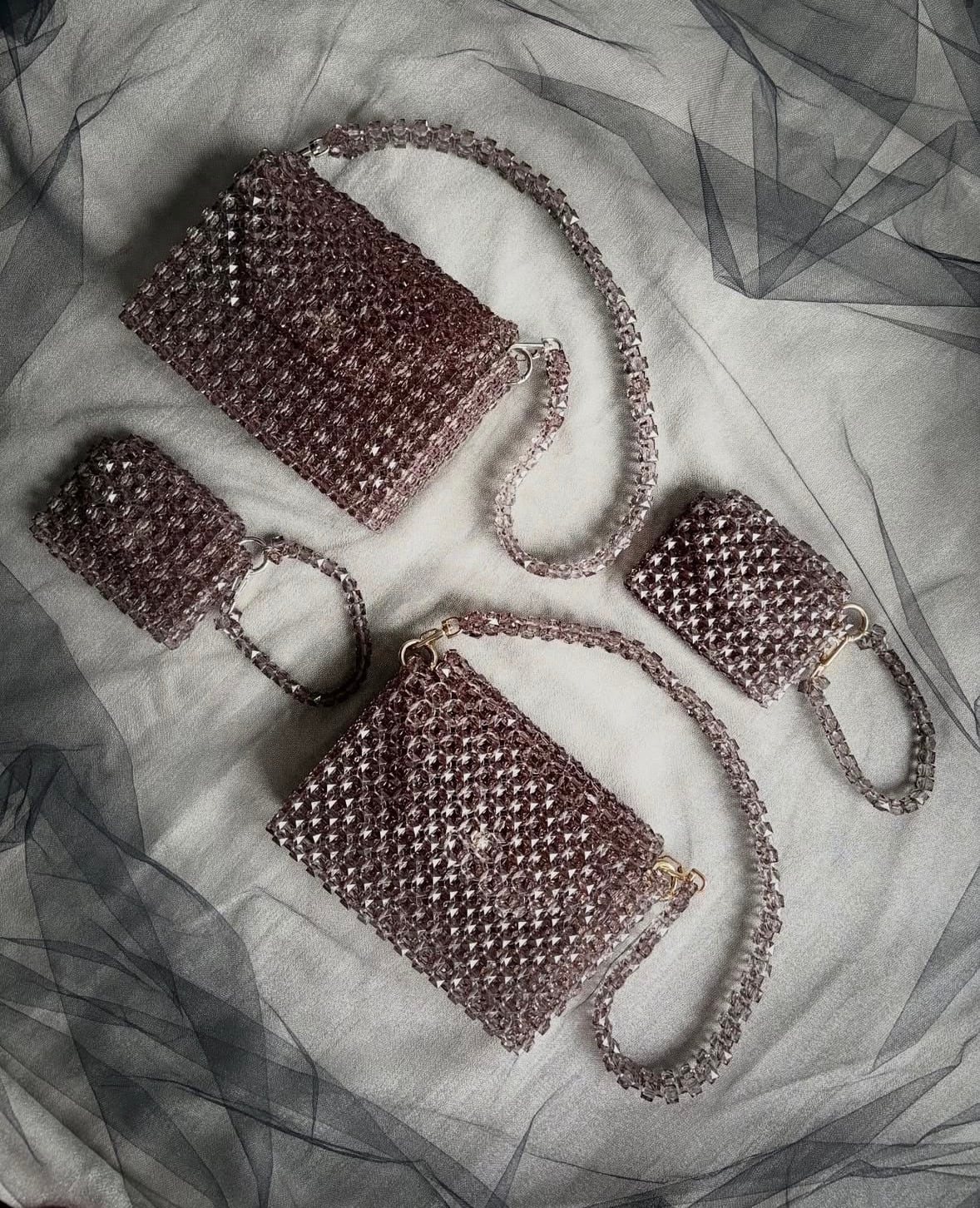 約1年ぶりの登場となる人気のブラッククリアビーズハンドバッグ☆ このたび金具部分がシルバーカラータイプが誕生しました! ブラッククリアビーズの金具をシルバーカラーにすることで、よりクールな美しさが際出ちます☆ キラキラで美しく華やかだけではなく、ビーズバッグでより自由にオシャレの幅も広げて欲しい… そしてビーズバッグを、立場や年齢や服装そして性別にも囚われずに、オシャレのアイテムとして取り入れて楽しんいただけますように… という想いから誕生したシルバーカラー☆ 〝より自由なオシャレを〟 ファッションで特別な瞬間を楽しむあなたに。ただのバッグではなく、あなたのスタイルを引き立てる素敵なアイテムとして、日々のコーディネートに彩りを添えます☆ 人気のデザインは変えずに以前のサイズよりスマホやミニ財布、キーケースといった普段使いのアイテムが十分に収まる仕様に! 約1年の時を経て、リニューアルしたブラッククリアビーズハンドバッグ☆ ミニバッグとしての機能性をしっかりと持ちながらも、見た目に華やかさをもたらすこの『シルバーカラー/ブラッククリアビーズハンドバッグ』は、自分自身へのご褒美はもちろん、大切な方へのギフトにもぴったりです☆ 追加購入オプションで長めビーズショルダーもご用意しており、チェーンは調整可能で自分好みのスタイルで楽しむことができます。 斜めがけも可能で、トレンド感を意識した装いが実現します☆ 細部にまでこだわったこのビーズバッグと共に、毎日を特別なものにしてみませんか☆ 心に残るファッション体験をお届けします。 ※こちらの商品にはシルバーカラーの金具を使用しております。 【こちらの商品は宅急便(保証付)送料800円となります。】 ※ ご注文から発送まで5〜7日頂きます。 ◾️バッグサイズ 縦約16㎝ / 横約20㎝ / 幅約5㎝ / 重さ約597g ショルダー部分約66㎝ ◾️長めビーズショルダー(斜めがけ用) 全長約114㎝ / チェーン部分長さ約17㎝ 重さ約121g ※両端をチェーンにしているため片側最大限約6㎝の調整が可能です。 身長やコーデに合わせた長さでお楽しみください。 ※ビーズショルダー部分は強度のあるテグスを2重にして編んでおりますのでとても丈夫です。 (金属との接続部分はテグスを3重〜5重にしております。) 安心してお使い頂けます。 ※商品の色味は、写真と実物では異なって見える可能性がありますのでご了承ください。 ※商品は繊細な素材を使用しておりますので、取り扱いには十分ご注意ください。ビーズの引っかかりや破損、水濡れに注意し直射日光の当たらない場所に保管してください。 ※使用しているテグスは太く強度のある物を使用しておりますが、過度な力が加わったり鋭利な物を入れた場合テグスが切れる可能性がございます。 ※ミニバッグとしてお届けしております。 小さめな財布やスマホやカードケース、リップやキーケースなど必要最低限の少ない荷物をお入れください。 たくさんの荷物を入れると破損する原因となりますのでご注意ください。 ※安全なビーズを選んで制作しておりますが、特に角ばった形状のビーズを使用しているバッグなどは、お召し物の素材(サテン、レース、チュール、ニット、コート、レザー、お着物など)によっては引っかかりやほつれる場合があるかもしれません。ご注意ください。 ※お召し物や人体などの、バッグ以外の破損、怪我につきましては責任を負いかねます。 ※不具合がございましたら、いつでもお直しいたしますのでインスタグラムのDMへご連絡ください。 (初期不良無料です)