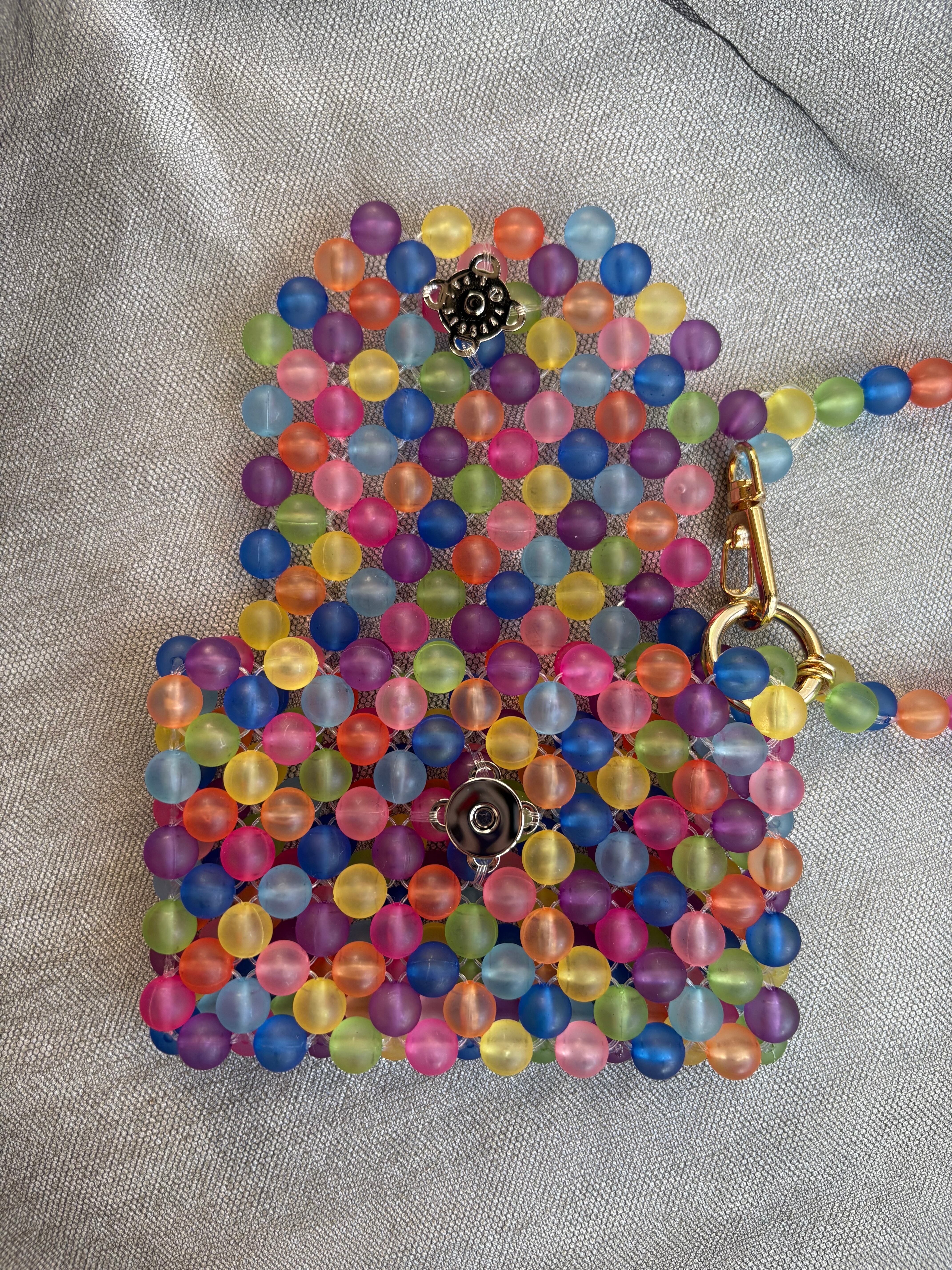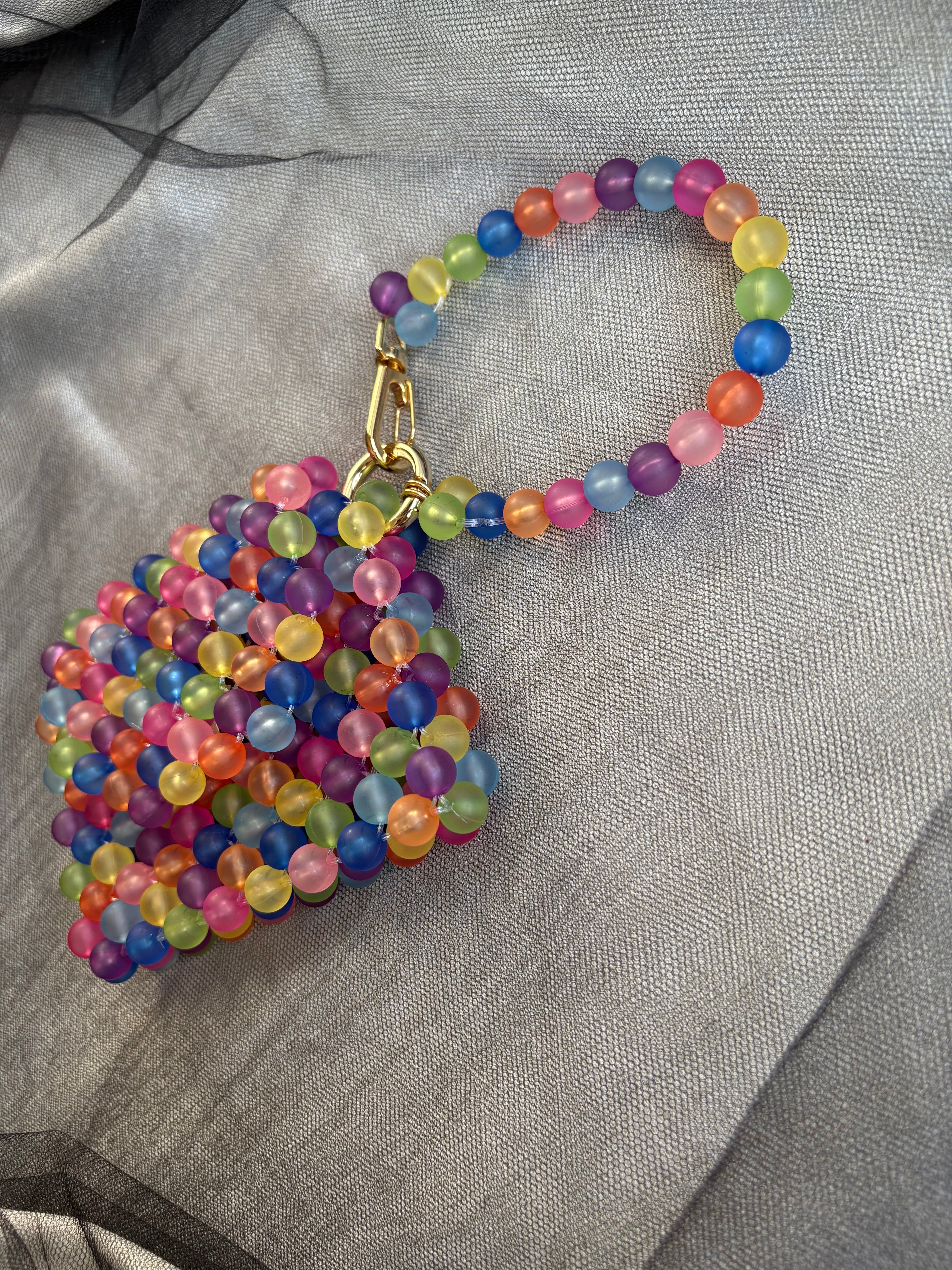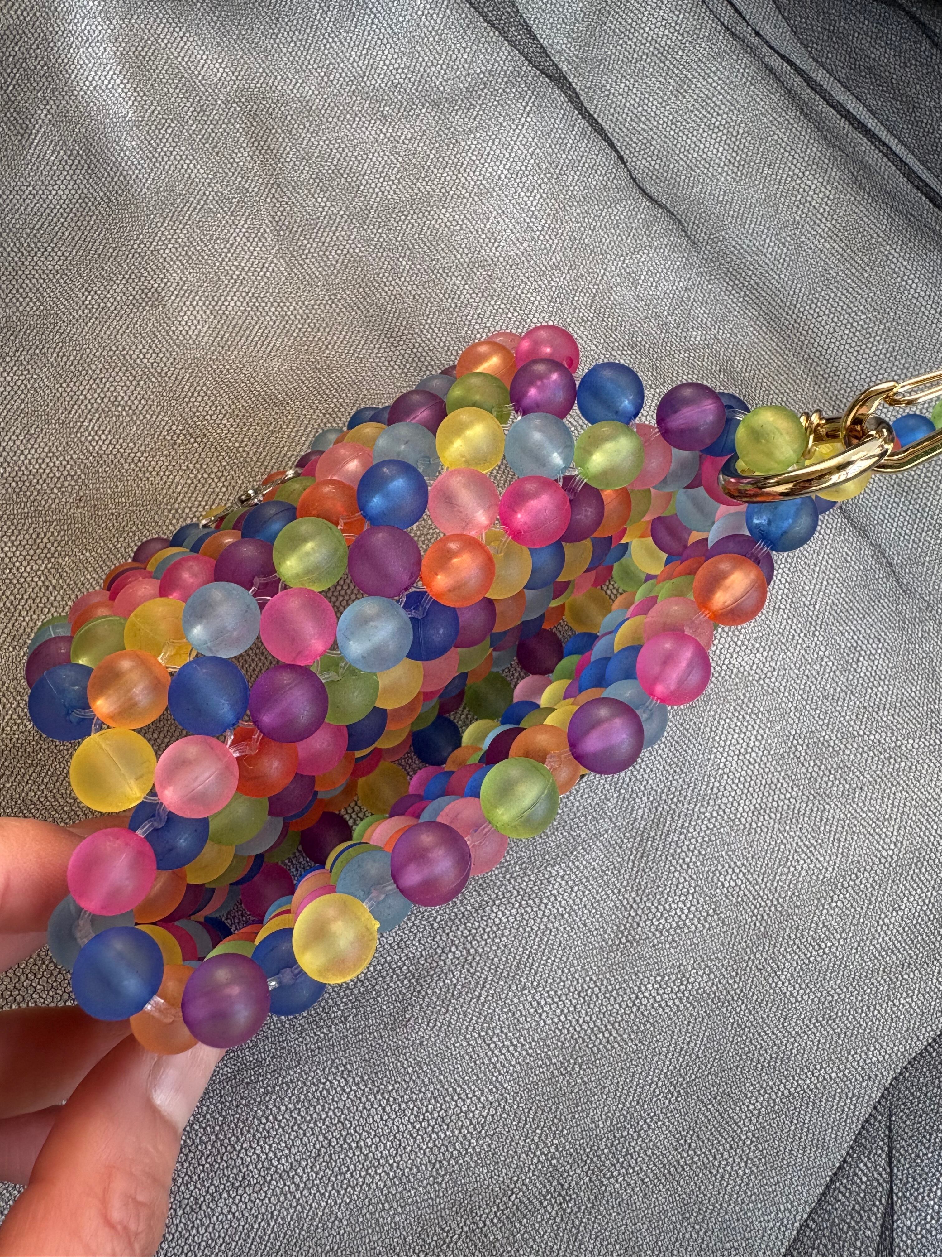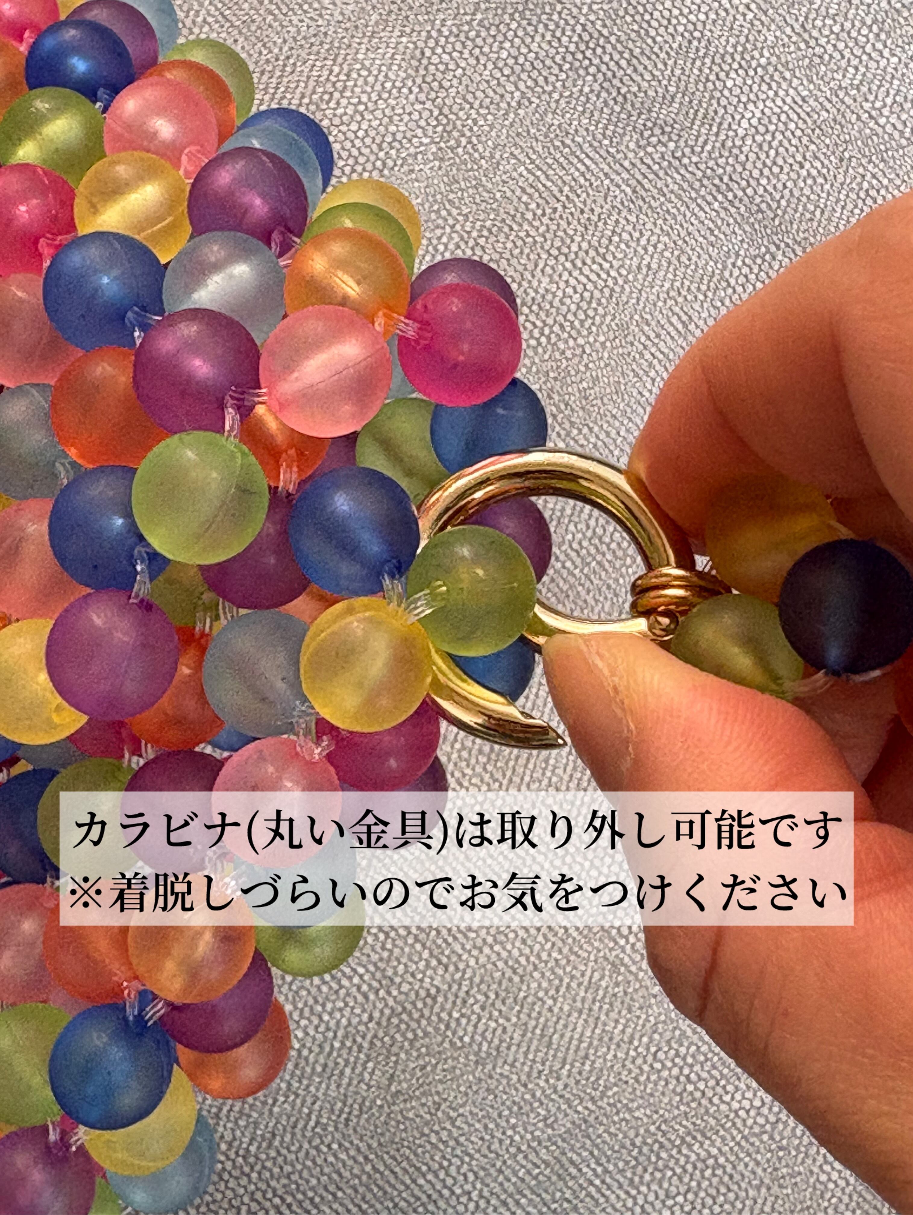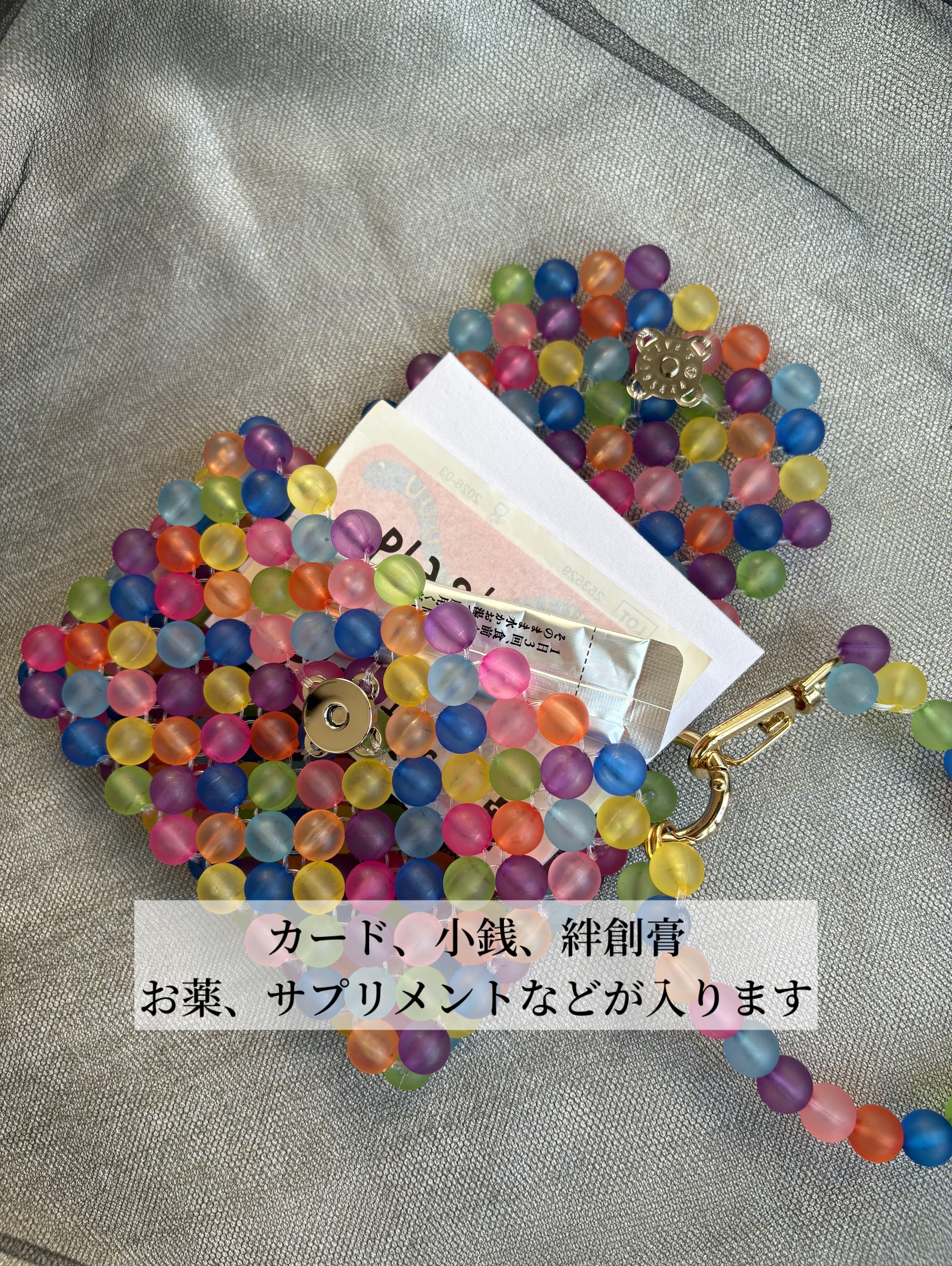鮮やかなマットカラーのビーズを使用したこのミニケースは、色合いの楽しさとデザインの柔らかさが特徴で、どんなシーンにもポジティブなエネルギーを与えてくれます♡
